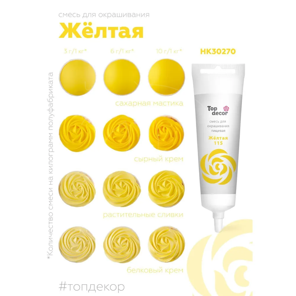 Доставка Краситель пищевой гелевый водорастворимый Top Decor "Жёлтый" 100 г из магазина в вашем городе: