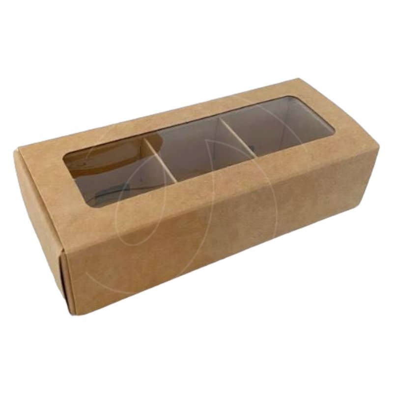 Доставка Коробка на 3 конфеты с окном крафт 13х5х3 см из магазина в вашем городе: